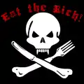 Символ «Ешь богатых» (англ. Eat the Rich) — вариация Весёлого Роджера, существует с 1980-х годов. На первый взгляд он выглядит как Весёлый Роджер, но скрещенные кости заменены на вилку и нож. Это, по большей части, символ анархо-панка.
