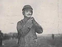 … После полудня, пользуясь прекрасной погодой, молодой авиатор сделал короткий разбег, плавно поднялся на воздух, и преследуемый одним офицером морского батальона на скакуне, пролетел 150 саженей и плавно опустился на земь. …