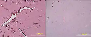 Ангиогенное влияние супернатанта саркомы Капоши на культуру клеток в матригеле (слева) значительно замедляется добавлением ангиостатина (справа). Фрагмент иллюстрации из работы Albini et al., 2009[1]
