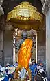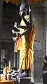 Ангкор-Ват планировался для почитания Вишну, прославления и обожествления его создателя, Сурьявармана II. Однако мурти Вишну в главном святилище храма не сохранилось. Большая каменная статуя Вишну, которая по местному поверью находилась в центре Ангкор-Вата, встречает посетителей в западном входном павильоне. Несмотря на то, что восьмирукое изображение не находится в святилище, а стоит возле ворот, в Ангкор-Вате ему поклоняются так же, как статуям Будды. На шею Вишну надета цветочная гирлянда, на тело накинута жёлтая ткань, а на руках раскачиваются символические знамёна из бумаги и ткани. Возле ног Вишну посетители оставляют подношения бутонов лотоса, постамент перед ним превращён в курильницу с благовониями. Несмотря на то, что статуя изображает Вишну, посещающие место буддисты отдают ему дань уважения, что отражает религиозный синкретизм, характерный для Южной и Юго-Восточной Азии[20].