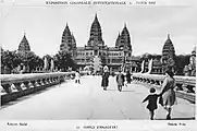 В 1931 году в Париже была проведена полугодовая международная колониальная выставка. Её символом стал полномасштабный макет Ангкор-Вата. Считалось, что колониальная выставка будет олицетворять усилия французского правительства, направленные на выполнение его цивилизационной миссии за пределами Европы. Павильон Ангкор-Ват объединял реконструкцию частей древнего кхмерского храма с витринами колониальных реформ. Снаружи павильон Ангкор-Ват представлял собой его детальную копию, в то время как внутренняя часть была посвящена экономической и социальной деятельности во французском Индокитае[17].