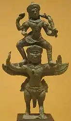 Первое древнекхмерское государство Бапном (или как его именовали в Китае II—VI веков, Фунань) находилось под сильным влиянием южноиндийской культуры. Во II веке на территории современной Камбоджи появились буддистские общины — сначала традиции махаяна, а затем в III веке тхеравады. Распространение буддизма сопровождалось его адаптацией к местным верованиям. Однако в последующем на смену буддизма пришёл индуизм. Вслед за распространением в Южной Индии вайшнавизм начал проникать в Камбоджу в первой трети V века. Его апогеем стало обожествление короля и появление культа дева-раджи, то есть богоподобного правителя[19].