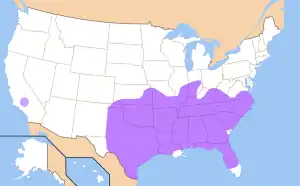 Лингвистический регион включает Алабаму, Джорджию, Теннесси, Миссисипи, Северную и Южную Каролину, Луизиану и Арканзас, а также большую часть Техаса, Оклахомы, Западной Виргинии, Кентукки и северной и центральной Флориды. Южные диалекты американского английского можно обнаружить также в самых южных районах Миссури, Мэриленда, Делавэра и Иллинойса[4][5].