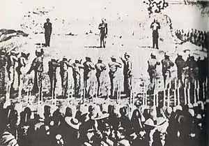 Император был предан военно-полевому суду и в соответствии с декретом от 25 января 1862 года приговорён к расстрелу[55]. Множество коронованных особ Европы[56], а также другие известные личности (включая Виктора Гюго и Джузеппе Гарибальди[57]) посылали письма и телеграммы в Мексику, выступая за сохранение жизни Максимилиана, но Хуарес отказался смягчить наказание. Он счёл необходимым показать, что Мексика не может терпеть какого бы то ни было вмешательства в свои внутренние дела со стороны других стран. 19 июня приговор был приведён в исполнение: император Максимилиан, генералы Мирамон и Мехиа были расстреляны на Холме Колоколов[56].
