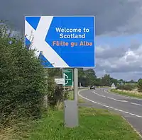Главное автомобильное пересечение границы на востоке проходит по шоссе А1. На западе, со стороны Шотландии до границы идет автодорога М74, которая со стороны Англии переходит в шоссе М6.