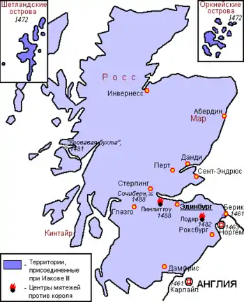 В 1482 году будущий король Англии Ричард III, воспользовавшись мятежом шотландских баронов и свержением с престола шотландского короля Якова III, захватил город Берик. Затем английские войска вторглись в Шотландию и подошли к Эдинбургу. При поддержке англичан к власти в стране пришёл герцог Олбани. Однако, в начале 1483 года он был вынужден бежать из Шотландии, так как Яков III при поддержке парламента вернул себе корону. Через год, летом 1484 года герцог Олбани вновь выступил против шотландского короля, но в сражении у Лохмабена потерпел поражение.
