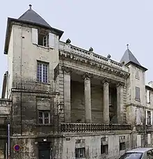 Здание ратуши было построено в неоготическом стиле[2] архитектором Полем Абади. Период строительства длился в 1858—1868 годах. Раньше в этом месте был расположен бывший замок графов Ангулемских. От замковых строений осталась полигональная башня-донжон, построенная в XIII—XIV веках и круглая башня, постройка которой датирована XV веком. В этой башне родилась Маргарита Наваррская, сестра короля Франциска I[3]. Ратуша расположена на пляс-Буйо (фр. pl. Bouillaud)[2].