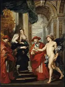 Художник Рубенс создал полотно «Ангулемский договор» на котором принимая ветвь оливы в знак мира, Мария Медичи соглашается примириться с сыном, представленным на картине в образе Гермеса. Мастер изображает Марию на королевском троне, увенчанную венком, символом мудрости и мученичества. Рядом стоит кардинал Ришелье, с самого начала ведущий переговоры между сторонами. Другой кардинал, непосредственно составивший сам договор, ведёт Людовика с символом мира — оливковой ветвью[1].