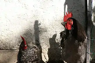 Гребень сваливается в сторону. Остальные отличительные признаки породы соответствуют тем, что и у петуха.