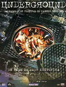 «Андергра́унд» (серб. Подземље, англ. Underground; в русских источниках также известен под названиями «Подполье»[6], «Под землёй»[7]) — пятый полнометражный фильм режиссёра Эмира Кустурицы, трагикомедия по сценарию Душана Ковачевича, основанному на его же пьесе. Действие ленты разворачивается на протяжении примерно пятидесяти лет (с 1941 года по начало 1992) в Югославии.