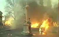 Иван оказывается в центре охваченного войной югославского города (вероятно, Сараево[9]). Он заглядывает в окно какого-то здания и видит там Марко, который пытается продать партию оружия полевому командиру (Эмир Кустурица). Когда Марко в своём инвалидном кресле выезжает из здания, его настигает Иван и своей тростью забивает брата до полусмерти, а потом вешается на колокольной верёвке ближайшей церкви.