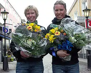 ![]() Лина Андерссон (слева) и Эмели Эрстиг после награждения на чемпионате мира 2005 | |||||||||||||||||||||