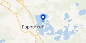 На западном берегу расположен крупный посёлок Боровский[10], на восточном — посёлок Андреевский. Северный и южный берега покрыта в основном сосновым лесом, на юге также расположены дачные посёлки. Почвы берегов представлены боровыми песками[11].