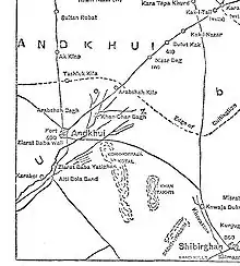 Андхой находится в Афганском Туркестане, части Туркестана, присоединенной к Афганистану в 1885 г. Один из самых северных в Афганистане, близок к границе с Туркменистаном.