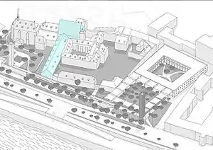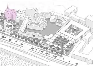 С северной стороны стоял двухэтажный дом клариссинок. Такое расположение строений имело функциональные причины, в силу того, чтобы клариссинки могли сразу из жилых помещений проходить до трибун.