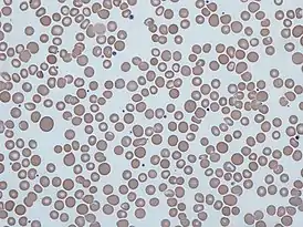 ![]() Мазок крови содержащей эритроциты различного размера | |