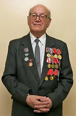Участвовал в Великой Отечественной войне. Он служил шифровальщиком в составе 4-й воздушной армии Кавказского фронта. Был награждён орденом Отечественной войны ІІ степени и медалями за участие в боевых действиях[2].