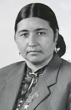 В 1967 году с площади 1200 га её колхоз собрал в среднем по 28 ц/га хлопка-сырца.