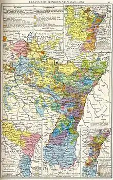 Территории Священной Римской империи, в настоящее время соответствующие регионам Лотарингия и Эльзас, были очень раздроблены, поэтому для королевства Франции было относительно легко применять политику аннексии в соответствии с «естественной» границей по реке Рейн. Таким образом, к Франции были присоединены территории трех епископов, Страсбурга, городов декаполиса и герцогства Лотарингия. В XIX веке часть этих территорий, считавшихся немецкими, была передана Германской империи, которыми она владела с 1871 по 1918 год, затем они попали под контроль Третьего рейха и считались его территорией с 1940 по 1945 год.