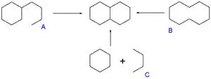 В англоязычной литературе иногда используются два термина: annulation для достраивания цикла с образованием двух связей и annelation для обозначения образования цикла из одного или нескольких ациклических предшественников[1], однако IUPAC не рекомендует использование термина annelation[2].