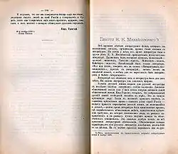 - Памяти Н. К. Михайловского. — в сб. «Юбилейный сборник Литературного фонда». 1859—1909. СПб., 1910 г.;
