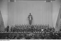 | Выступление в Лейпциге (ГДР), 1952 год. | Выступление в Будапеште (Венгрия), 1951 год. | Выступление в Лейпциге (ГДР), 1952 год. | Выступление в Хельсинки (Финляндия), 1950-е годы. |