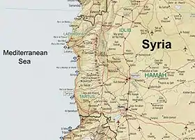 ![]() Карта западной части Сирии, хребет Ансария посередине | |