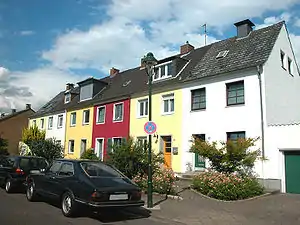Зданий, представляющих из себя архитектурную ценность и охраняемых законом на улице нет. Все здания — образца жилой архитектуры первой половины XX века, постепенно реставрированные со временем. Как правило, это шестиподъездные жилые дома с двухскатной черепичной крышей. В каждом подъезде проживает одна семья среднего уровня достатка. По существу, это как бы отдельный дом под общей крышей, в котором семья занимает два с половиной этажа (вместе с чердачным полуэтажом). Особо стоит отметить цветочные клумбы, разбитые в палисадниках, занимающих почти половину всей ширины улицы. Все здания образцово ухожены.