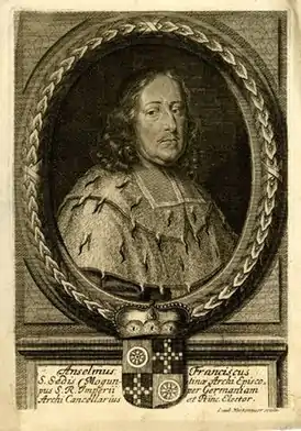 Шестнадцатилетнее пребывание на посту Ансельма Франца фон Ингельхейма было омрачено постоянным колебанием между миром, нейтралитетом и опустошительными войнами Аугсбургской лиги, в результате которых ему приходилось долго жить в изгнании в Ашаффенбурге .