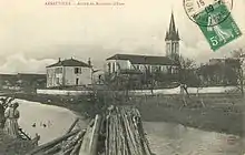 Вид на церковь Ансовиля с берега Эсс. Почтовая открытка начала XX века.