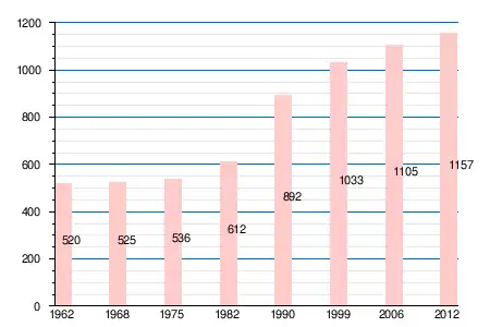 | 1962 | 1968 | 1975 | 1982 | 1990 | 1999 | 2005 | 2006 | 2010 | 2011 | 2012 |