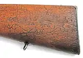 Представляет собой металлическую скобу или кольцо на шарнире, расположенные на цевье (или дульной части ствола) и прикладе оружия, к которым крепится ремень, либо в нижней части на рукоятке пистолета (револьвера).