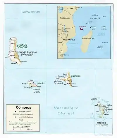| Язык | коморский язык, распространены французский язык и арабский язык |