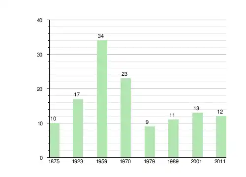 | 1875 | 1923пер.[4] | 1959пер.[5] | 1970пер.[5] | 1979пер.[6] | 1989пер.[7] | 2001пер.[8] | 2011пер.[9] |