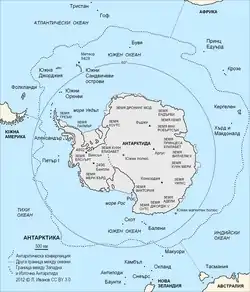 Анта́рктика (вместе с Субантарктикой) — южная полярная область земного шара, ограниченная с севера антарктической конвергенцией. Включает Антарктиду и прилегающие к ней острова и участки Атлантического, Индийского и Тихого океанов[1]. Южные участки этих океанов в пределах Антарктики нередко выделяют в отдельный Южный океан.