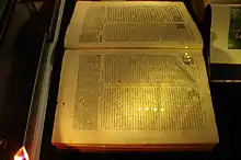 - «Я видел… Библию, напечатанную на пергаменте, из тех, что Плантен недавно издал на четырёх языках и которую король Филипп отправил этому папе, как он сам говорит в надписи на переплёте»[51].