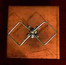 Периметр каждого квадрата равен длине волны, на которую настроен приём. Диаметр проволоки для 1-5 телевизионных каналов должен быть около 12 см. Поэтому для радиосвязи и телевидения метрового диапазона (1-12 каналы) она получается очень громоздкой. Для облегчения конструкции использовалась прокладка тремя проводами меньшего сечения, но всё равно она имела большой вес и габариты.