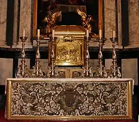Иногда, как, например, в римской церкви Санта-Мария-ин-Трастевере, к передней стенке алтаря приставляют икону Спаса Нерукотворного.