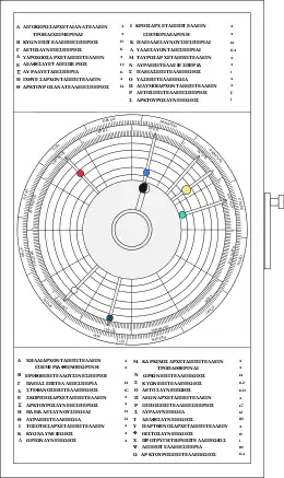 На передней стороне механизма находились две концентрические шкалы с зодиакальным и солнечным годами: