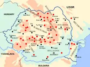 ![]() Точками на карте Румынии отмечены центры антикоммунистического движения | |||