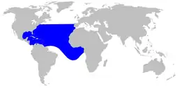 Ареал антильского ремнезуба (синий цвет) |