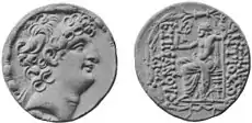 ![]() Монета Антиоха VIII. На реверсе изображён Зевс на троне с Никой в руках, а также греческая надпись ΒΑΣΙΛΕΩΣ ΑΝΤΙΟΧΟΥ ΦΙΛΟΜΗΤΟΡΟΣ («царя Антиоха Филометора») | |