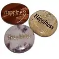 Антистрессовые камешки с пожеланием счастья на обратной стороне