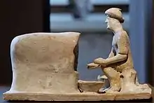 Подавляющее большинство свободных женщин в греческих полисах являлись и воспитывались домохозяйками. Платон в «Государстве» (455с), несмотря на свою мизогинию, признавал, что женщины являются лучшими поварами, чем мужчины. Среди танагрских статуэток сохранилась одна, воспроизводящая жанровую сцену: женщина что-то варит в котле, а её дочь, находящаяся рядом, пытается ей подражать. Существует предположение, что в 7-летнем возрасте сыновья покидали гинекей, тогда как дочери оставались при матери до замужества, и получали воспитание дома. Согласно «Ойкономике» Ксенофонта, в обязанности матери входило и моральное наставление дочери, включающее понятия умеренности, сдержанности, супружеской верности и послушания. Эти добродетели зачастую присутствуют на надгробиях и даже упоминаются в одной из речей Лисия. Поскольку замужество чаще всего осуществлялось в возрасте 15 лет, дальнейшим обучением молодой жены занимались свекровь и муж. Ещё с гомеровских времён единственной «чисто женской» сферой экономики были прядение и ткачество, которые в эпосе рассматривались и как обязанность, и как женская добродетель, распространяемая как на богинь, так и рабынь[79]. Даже в маскулинном обществе женщины сталкивались с необходимостью самостоятельно зарабатывать; «естественными» считались рыночные профессии, наёмная или надомная работа — прислужницы, кухарки, швеи; некоторые жёны граждан занимались акушерством. Единичные эпиграфические свидетельства сохранились о женщинах — сапожнике и ювелире. Одна из подписей на вазах свидетельствует, что женщины могли быть заняты и в художественном промысле; скорее всего, они были свободными. Косвенные свидетельства позволяют сделать заключение, что в Афинах женщины, занятые в ремесле, могли состоять в гильдии наравне с мужчинами. Впрочем, Александр Волицкий предполагал, что некоторые женщины-ремесленники могли являться вольноотпущенницами, которые продолжали заниматься профессиями, приобретёнными или практикуемыми в несвободном состоянии[80].