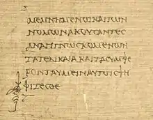 Намного сложнее обстоит ситуация с источниками по собственно образовательному процессу в античности. На разных этапах школьного обучения употреблялись восковые таблички или использованные папирусы, а также остраконы. Книги не являлись непременной принадлежностью среднего образования, в первую очередь, — по причине редкости и хрупкости папирусных свитков[11]. Из-за особенностей средиземноморского климата преимущественно сохранились граффити, вырезанные по штукатурке, керамике или металлу. Итальянский археолог М. Делла Корте в 1959 году пытался по граффити определить местоположение школ в Помпеях[12]. Находки восковых табличек, тем более относящихся к школьному процессу, единичны[Прим. 2], а папирусы как массовый исторический источник обнаруживаются только в Египте, и для их изучения служит особая дисциплина — папирология. Специально школьными папирусами античности занималась итальяно-американская исследовательница Раффаэлла Крибиоре (род. 1948), посвятившая этой теме две специализированные монографии[14]. В Египте найдено не менее 400 школьных упражнений на папирусах, обнаруженных в разных местах и относящихся к разному времени. Только во время американской археологической экспедиции 2006 года в руинах Тримитиса (ныне Амхейда, оазис Дахла) впервые удалось обнаружить школьное здание, что подтверждалось и граффити на стенах. В соседней деревне Келлис были найдены следы надомной школы, где обнаружили кодекс на деревянных дощечках с тремя речами Исократа, которые использовались на высшей стадии обучения. Кроме того, во время раскопок в александрийском районе Ком-эль-Дикка в том же 2006 году, было обнаружено не менее 20 построек, отождествлённых с аудиториями позднеантичной высшей школы[15].