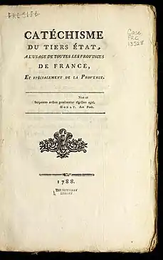 - Antonelle P.-A. Catéchisme du Tiers-état, à l'usage de toutes les provinces de France, et spécialement de la Provence. — Reprod.. — Paris, 1788. — 40 с.