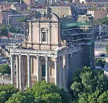 Строительная деятельность Пия по сравнению с его предшественниками была не столь плодовита. Антонин завершил строительство Мавзолея Адриана неподалёку от Тибра, построил храм в честь божественного Адриана на Марсовом поле и Фаустины на форуме[4]. Кроме того, он отреставрировал старый свайный мост в Риме, «Pons Sublicius», Грекостадиум и Колизей[4]. Император, возможно, внёс некоторые исправления в конструкцию здания римского Пантеона, потому что историк Юлий Капитолин упоминает восстановление храма Агриппы, но текст может быть повреждён; в то же время произошло восстановление храма Божественного Августа в Риме, что было отмечено на монетах[4].