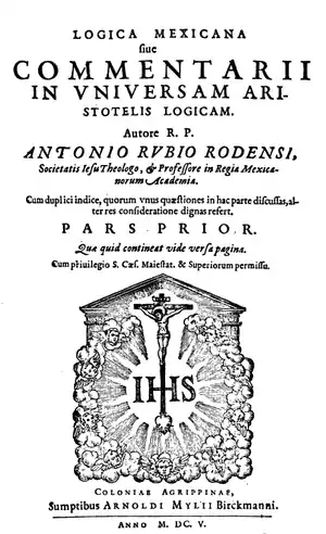 Logica Mexicana — это книга комментариев к аристотелевской логике, где говорится о природе логики, научности логики и вопросах философии языка. В Mexican Logic Рубио выражает благодарность Академии Комплутенсе, что в своем письме он надеется:
