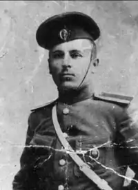 Имел чин портупей-юнкера, а с сентября 1918 года — прапорщика. За боевое отличие стал хорунжим[2], а затем и сотником (также за боевое отличие)[1][3].