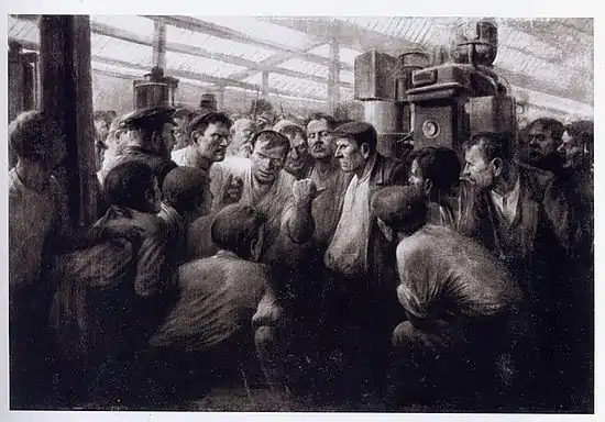 В советское время творчество художника было подчинено требованиям новой эпохи, что нашло отражение в тематике его работ (см. пример на илл. ниже)[2].